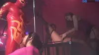 In the kinky Bisexual Strippers Enslaved in a Cage Playground, the scene begins with two stunning bisexual strippers wearing nothing but their skimpy latex outfits, both chained up inside a small cage.The crowd surrounds the cage, watching with eager eyes as the first man walks up to take control of the situation.He removes her gag and starts with soft, sensual domination, making her submissive to his every command.He orders her to undress herself further, slowly and seductively, until she is completely nude, leaving nothing but stockings and chains on her body.Her fellow strippers can be seen through the cage, each one watching in anticipation as they wait for their turn under this mans powerful hands.He then proceeds to remove his own clothes, revealing a massive erect cock that is desperate for attention.With an air of dominance, he pulls her close and starts by playing with her bound breasts, before moving lower, teasing the edge of her latexclad pussy.Her chains are loosened to allow her to kneel at his feet, and now free of her restrictions, she eagerly takes him into her mouth.The erotic scene inside the cage becomes more explicit as her lips wrap around his cock, her tongue swirling around it with skill and passion.Meanwhile, her fellow strippers look on in anticipation, waiting to experience a similar encounter, their hands tracing the latex outfits they are fun to wear.As she starts to deepthroat his cock, her eyes locked on him intently, he pulls her back to stand up and instructs her to mount him.Her body is covered in sweat and the excitement of the moment as she positions herself atop his throbbing erection.Their groans of pleasure fill the air as they fuck with passion, the chains binding them together as a symbol of their lustful entanglement.Simultaneously, another man joins her in the cage and starts to undress.The women start to interact with him in a lesbian scene, fingering each other while he watches on, his cock stroked by both.Their bodies are entwined with latexclad hands grasping at their naked flesh, desperate for satisfaction.In the end, the two strippers take turns receiving facials and cumshots, splashed with the pleasure of being completely dominated and satisfied in this kinky cage playground.The scene concludes as they all come together, panting with exhaustion and ecstasy, each individual now obedient to the power and pleasure that their captor has provided for them.Inside the Bisexual Strippers Enslaved in Kinky Cage Playground, this explicit porn video showcases domination, submissiveness, chains, cumshots, cocksucking, fingering, fucking, latex outfits and a whole lot more.This is one story of passion and entanglement that will keep you on the edge of your seat.