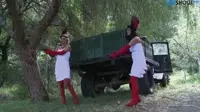 Lesbian Beauties Outdoor Naked and Horny Bitches Enjoy Fingering and Doggy Style